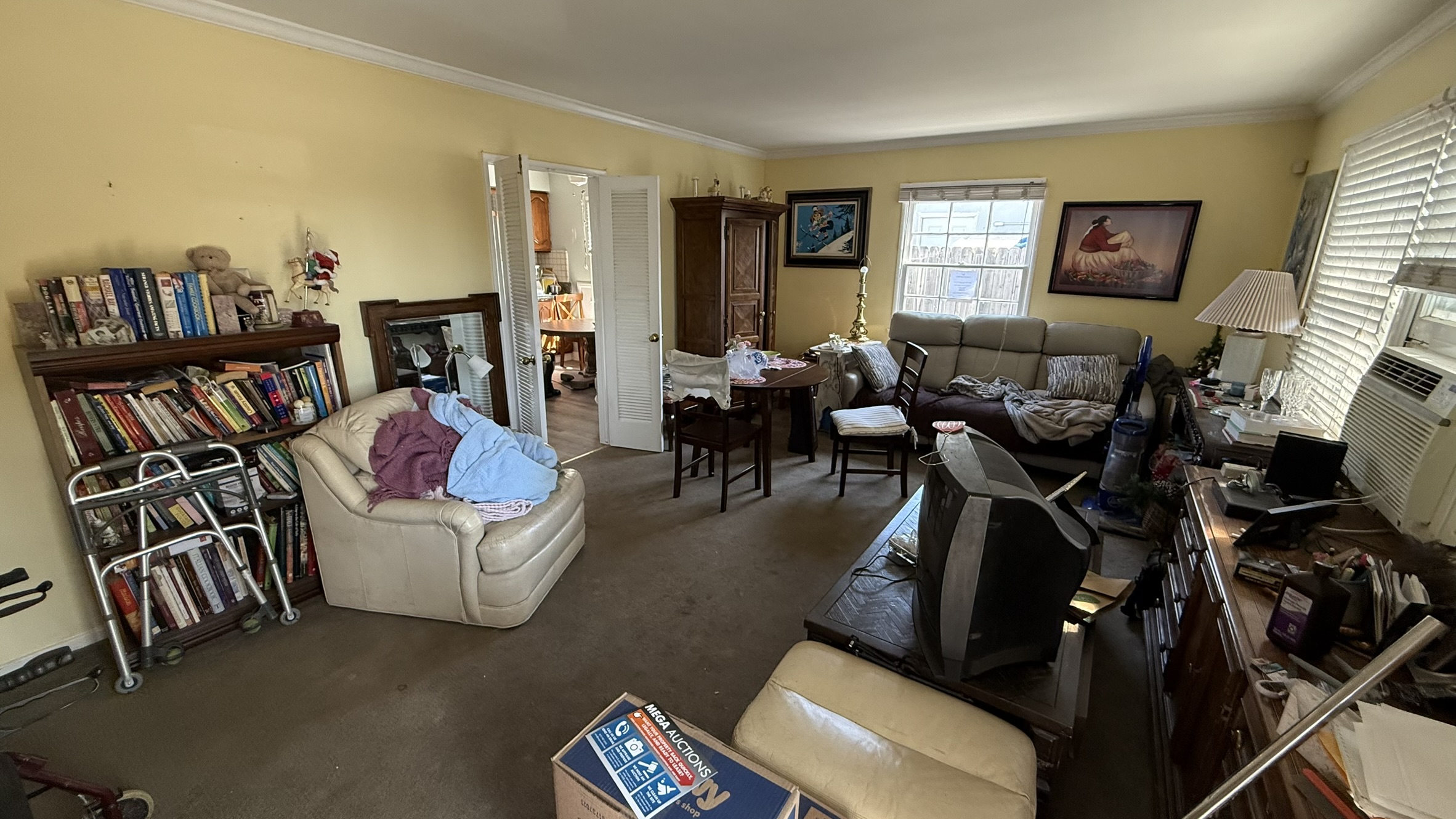 Rugs, Mainstays Stove Heater, Boxes, Bowls, Eero Wi-Fi Extender, Black & White Armchair, Throws, Blankets, Rollator Walker, Bookshelves, Books, Crystal Stemware, Lamps, Trays, Walker, Stuffed Toy, Beer Stein, Decanter, Blood Pressure Monitor, Chairs, Side Tables, Poker Set, Framed Mirrors, Foot Stool, Broom, Pet Food, Coffee Table, Dishes, Wall Art, RCA TV, Buffet, Padlock, Scissors, Answer Phone, TacVisor, Cups, Office Supplies, Brush, Sunglasses, Accessories, Power Strips, Oster Massager, Bags, Hair Ties, Wallets, Bracelets, Women’s Clothing, Router, Cables, Bowls, Christmas Décor & Lights, Adult Underwear, Tables, Heaters, Couch, Wardrobes, Plates, Batteries, Pitcher, Scarfs, Stool, Window Air Conditioners, Emeril Lagasse Air Fryers, Stand, Jugs, Teapot, Rolling Cart, Food Items, Pots & Pans, Artificial Flowers, Food Processor, Containers, Glass Jars, Bakeware, Mixing Bowls, Silverware, Flashlight, OptiGrill, Fridge / Freezers, CrockPots, Mug Tree, Samsung Range, Trash Bin, Microwave Ovens, Presto HeatDish, Blender, Cutting Boards, Glasses, Mugs, Vinyl Gloves, Misc Kitchenware, Knife Set, Ninja Processor, Coffee Brewer, InstantPot, Women’s Hats, Bags, Umbrella, Percolator, Step Ladder, Cleaning Supplies, Towels, Linens, Iron, Shower Chairs, Women’s Shoes, Bed Frames, Mattresses, Bedding, Draws, Vinyl Records, Vizio TV, Chest, Handbags, PCB, Camera, Décor Art, Answerphone, Walking Cane, Cupboard, Atomi Power Cube, Mainstays Heater, File Cabinet, Jewelry Box, Jewelry, Totes, Suitcases, Toilet Paper, Desk, Pillows, Inkjet Printer, FoodSaver Sealer, Vornado Fan, Shelving Unit, Laundry Baskets, Roaster, Shoe Rack, Wicker Baskets, Fire Extinguisher, Wheelchairs, Ceiling Fan, Bric-A-Brac, Trotter Treadmill, Vacuum Cleaner, Body Spa, Pressure Cooker, MultiCooker, Air Fryer, Gas Grill, Furniture Dolly, CTR TV, Furniture Dollies, Cooler, Screen Printing Frames, Wire Rack, Various Original Framed Art (Paul Blaine Henrie, Roger Etienne, D.E. Weigel), Various Items Unsearched.
