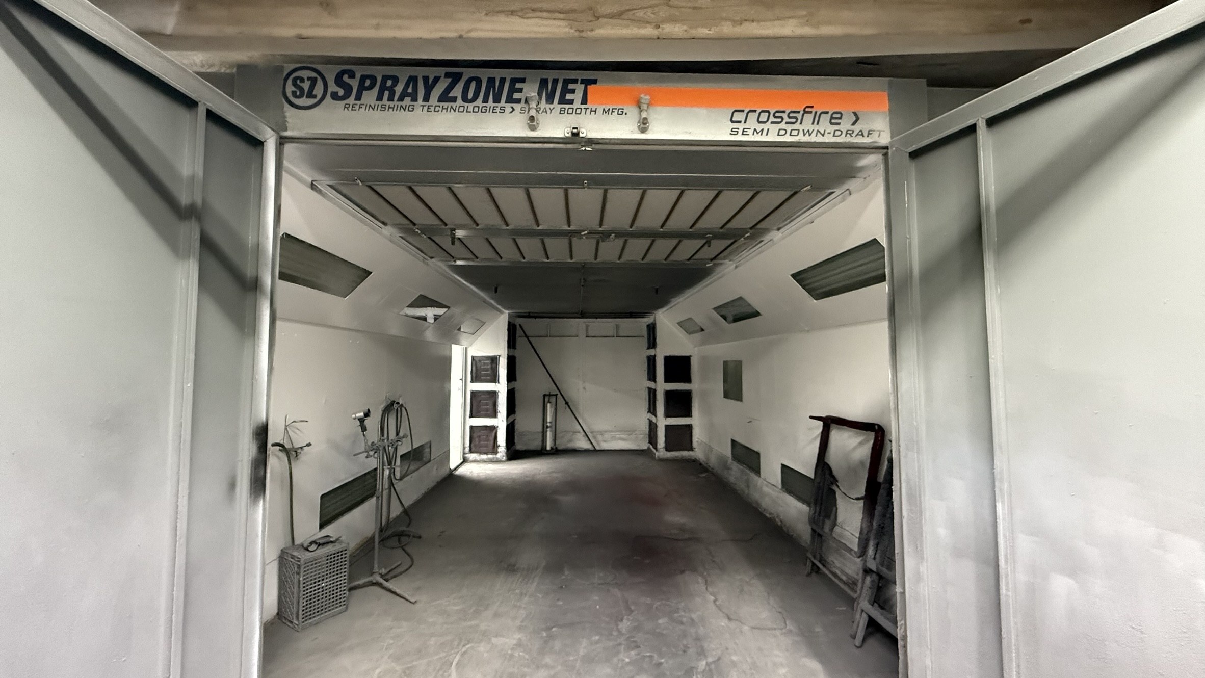 uPunch HN1500, LCD TVs, Desks, Chairs, Office Supplies, File Cabinets, Office Chairs, Coffee Tables, Décor, Apple Watch, Brio Water Dispensers, Folding Chairs, Trash Bins, Key Hanger, File Holders & Trays, ADAS Calibration Tool, Wall Clock, Mug, Monitors, Keyboards & Mice, Magic Chef Refrigerator, Wireless Router, Eero AP, Switch, Brother MFC MFC-L5850DW, HP MFP M277dw, Steel & Wood Cabinets (locked), Craftsman Drill, Shelving, PC’s, Various Oils & Coolants, Booth Wall Coat, Tanks, Color Swatches, Plastic Boxes, First Aid Kits, Parts Boxes, Belts, Sealers & Adhesives, Rigid Vac HD090, SocalFilters PLYPNL-00006, Fire Extinguishers, SunBurst Roll, Buckets, Mop, Cleaning Supplies, Shovel, Valspar Refinish Universal Intermix System, Fillon Base Quick-Mix 150 Plus Machine, Containers of Paint Tint & Base, Red Devil 5410 Mixer, HP Computer, Compressed Gases, Power Cables, SnapNFlow Containers, Stir Sticks, Various Caps, Misc Parts, Welding Cart, Kuhn Power Pull, Strut Compressor, Folding Tables, SprayZone.net Crossfire Semi Down-Draft Spray Booth, Filters, Wrap Cart, Paint Stands, Air Hoses, Instafinish Spray Systems, Painters Pole, Pads, Astra MM18 18” Masker, Solvent Drums, Paint Booth Curtain System, Step Ladders, Mobile Cart, Lockers, Microwave, Kenmore Refrigerator, Infratech SRU-1615, Step Stool, Heavy Duty Jacks, Stinger Stands, Hankison HPRN125, Cen-Tech Charger, Chief EZ Liner 2 Frame Machine, Wire Racks, Floor Fans, Vacuum, Workout Bench, Ladder, Parts Frames, Pallet Rack, Canopy Shades, Bend Pak Lift, Industrial Compressors, Various Items Unsearched.